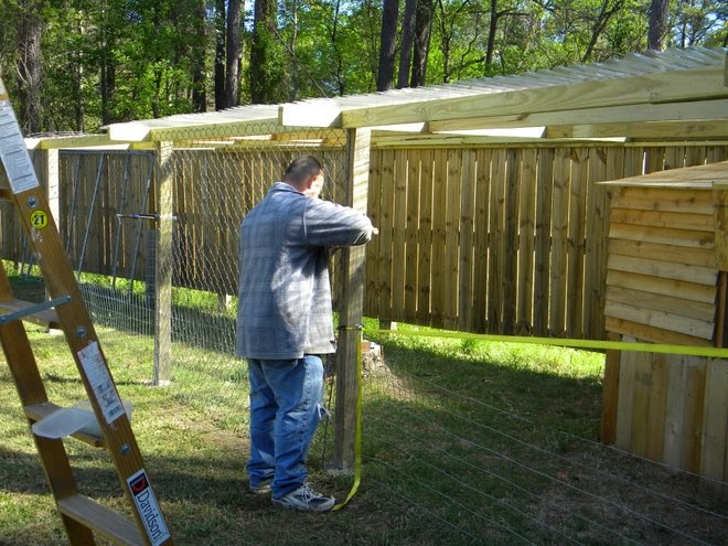 chicken wire run attach coop build using air middle board compressor side gun overlapped